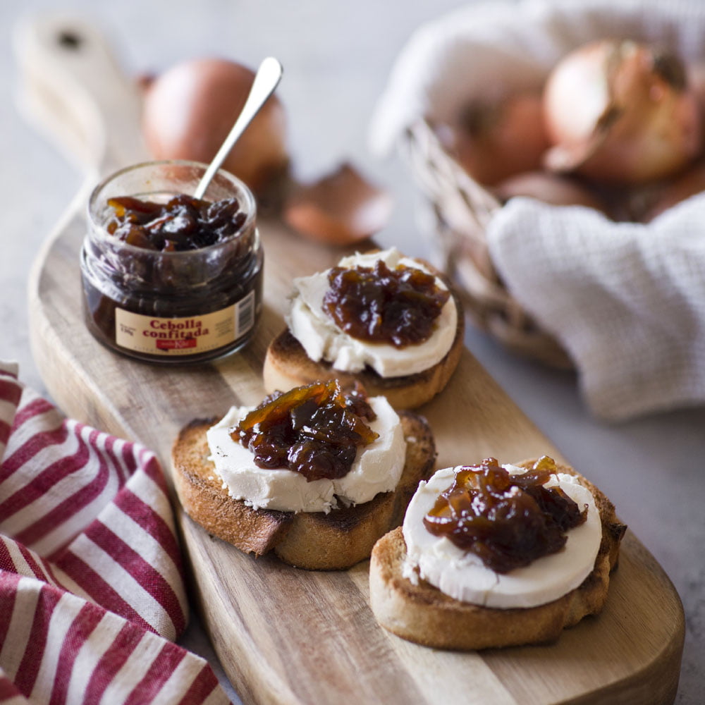 Cebolla confitada elaborada con las más selectas cebollas y con Pedro Ximenez, para dar un toque único y diferenciador a tus platos. Nuestra cebolla caramelizada es ideal para acompañar todo tipo de pescados, carnes y quesos.