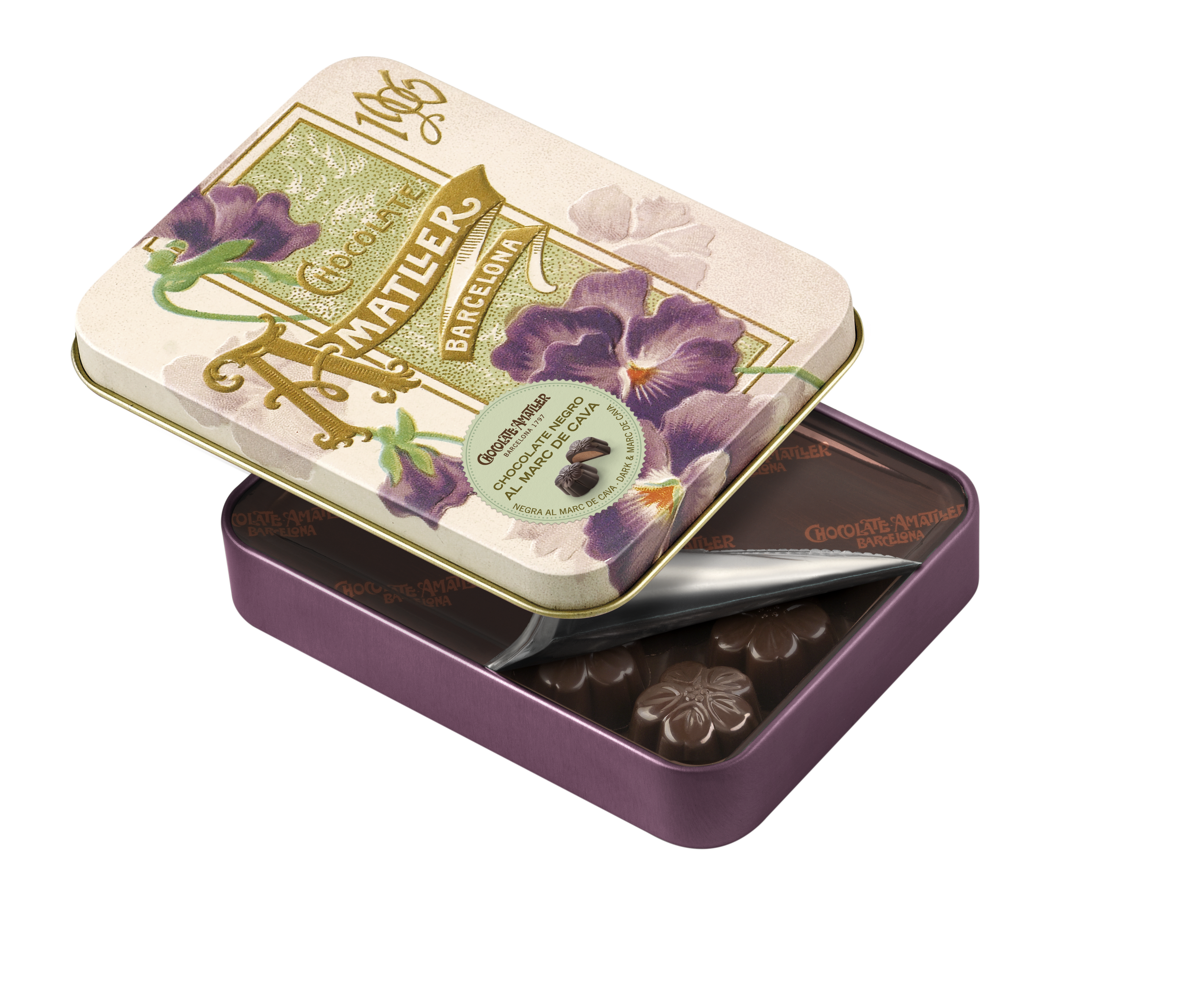 Flores al Marc de Cava Lata 72g – CHOCOLATE AMATLLER