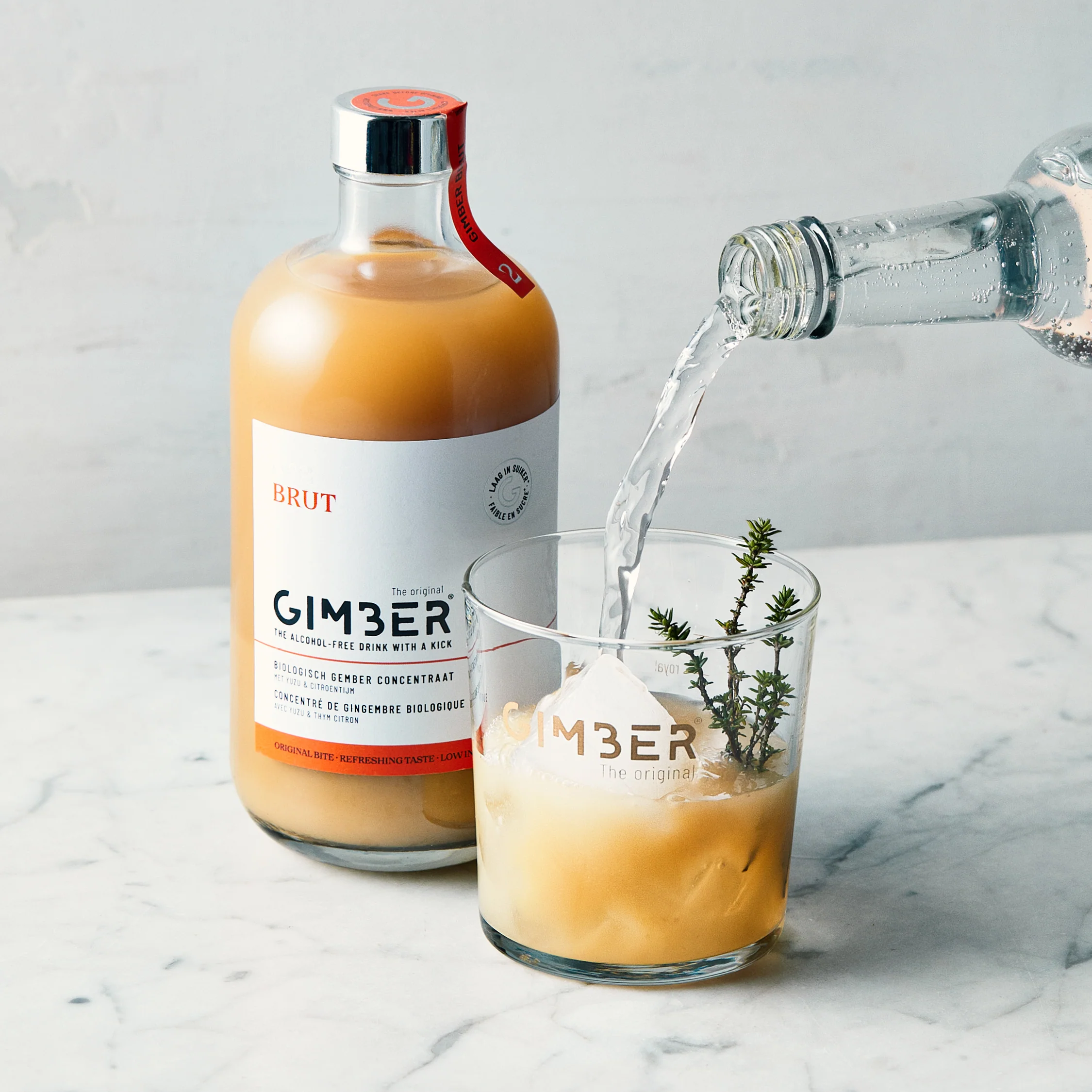 La preparación perfecta son 30 ml de Gimber + 200 ml de agua.