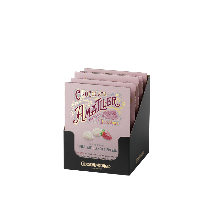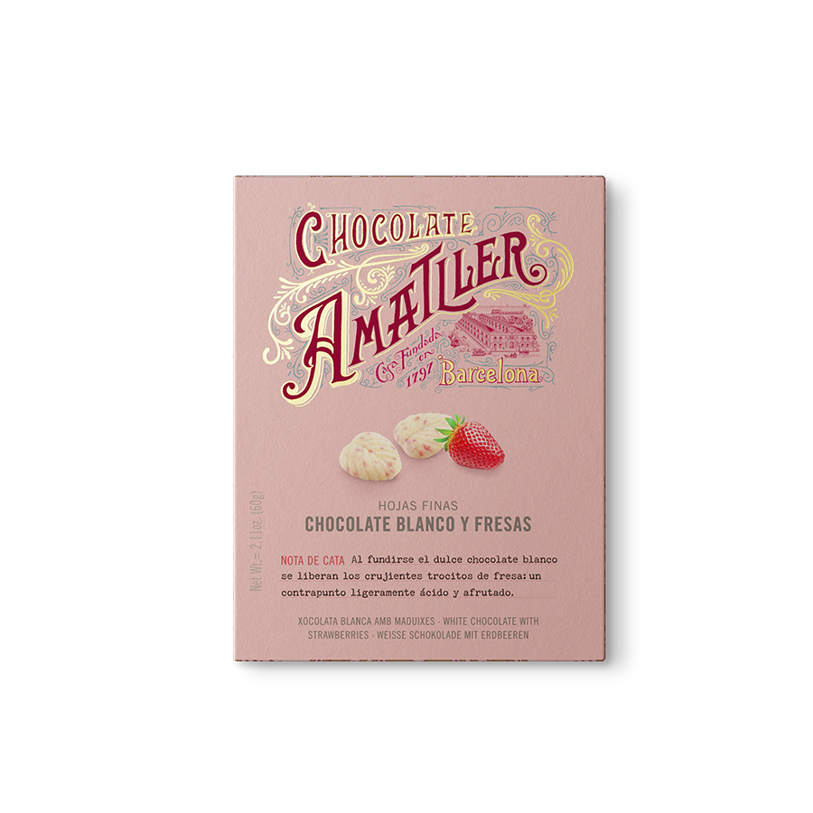 Hojas Chocolate Blanco y Fresa 60g – CHOCOLATE AMATLLER