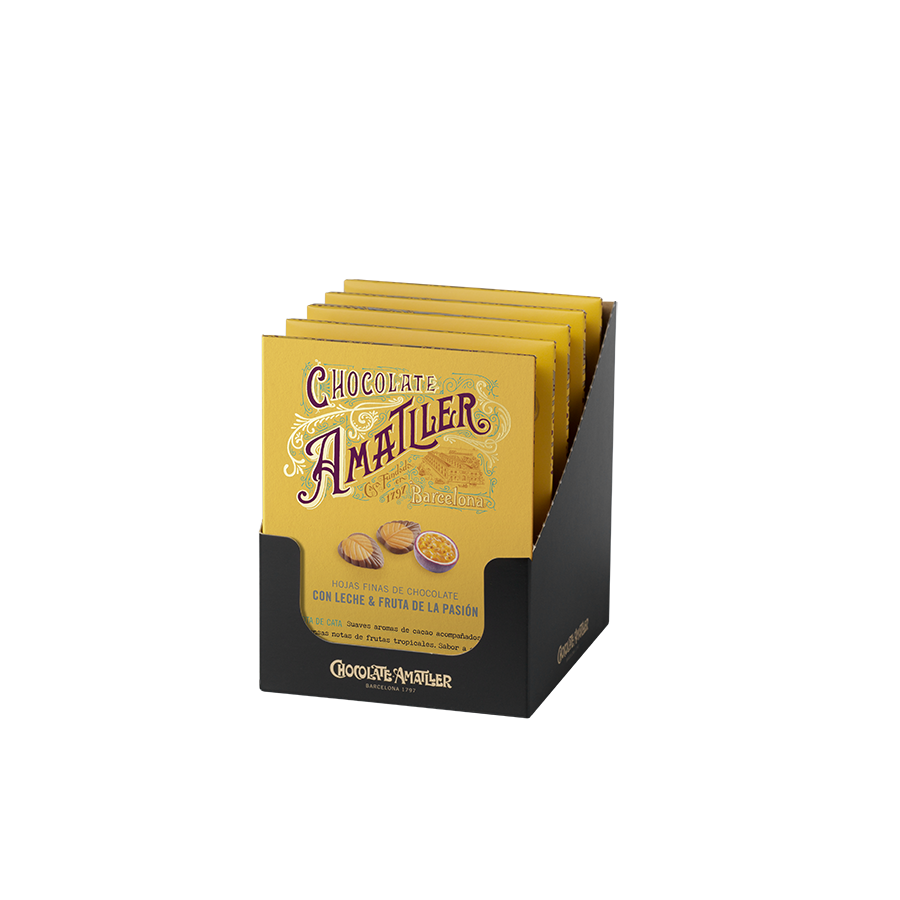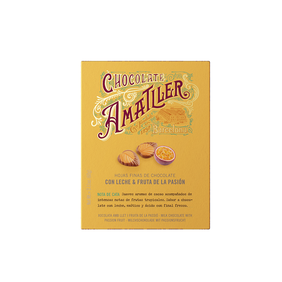 Hojas de Chocolate con leche y fruta de la pasión 60g – CHOCOLATE AMATLLER